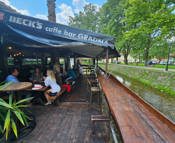 サモボル旧市街の中心近く、評価が高いカフェバーです。