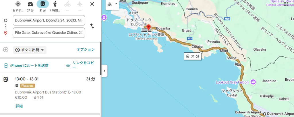 - 出発地:ドブロブニク空港(DBV)到着ロビー前
